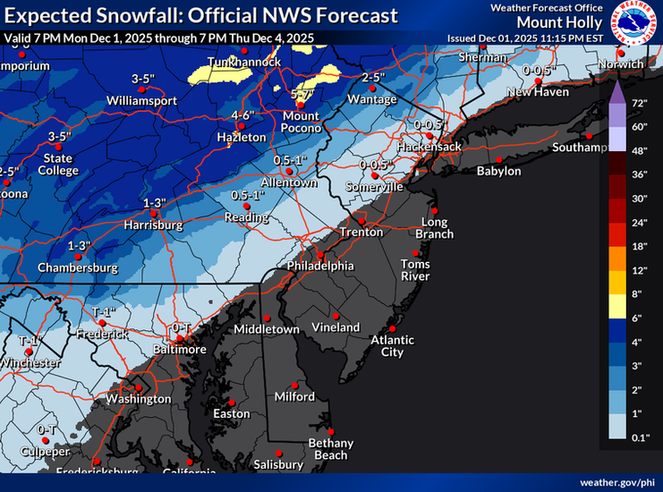 I can assume, the large area of Central and South New Jersey with no observed totals were due to the event being mostly rain with no measurable accumulation, which is exactly what the general consensus of both professionals and AI forecasted to happen.